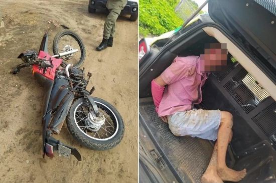 Motocicleta utilizada pelos criminosos e criminoso capturado (Imagem: Reprodução/Whatsapp)